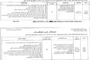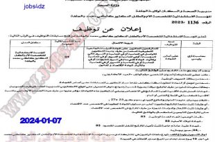 اعلان عن توظيف مديرية التربية لولاية اولاد جلال ads تعلن مديرية التربية لولاية اولاد جلال عن فتح مسابقة توظيف في الرتب المبينة ادناه مساعد وثائقي امين محفوظات عدد المناصب 02 منصب نمط التوظيف: مسابقة على اساس الشهادة ملحق رئيسي بالمخبر عدد المناصب 07 منصب …