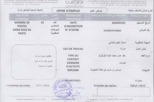 أكمل القراءة »اعلان عن توظيف بمديرية التربية لولاية اولاد جلال