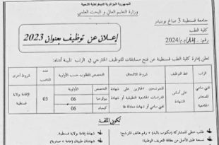 أكمل القراءة »اعلان عن توظيف بجامعة قسنطينة 3 صالح بوبنيدر