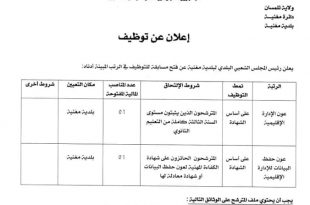 أكمل القراءة »اعلان عن توظيف ببلدية مغنية ولاية تلمسان