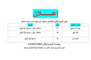 أكمل القراءة »الفرع الولائي للتشغيل يعلن عن توفر مناصب العمل التالية: