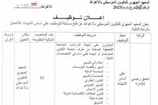 وزارة الثقافة والفنون المعهد الجهوي للتكوين الموسيقي بالأغواط ads إعلان توظيف يعلن المعهد الجهوي للتكوين الموسيقي بالأغواط عن فتح مسابقة للتوظيف على أساس الشهادة على أساس الإختبار للالتحاق بالرتبة التالية: جميع مسابقات وإعلانات التوظيف ديسمبر 2025 عرض عمل في المؤسسة العمومية الجزائرية للمياه عرض …