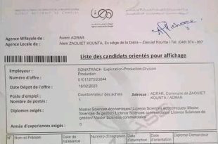 أكمل القراءة »قوائم المترشحين لمسابقة سوناطراك (108 مناصب)