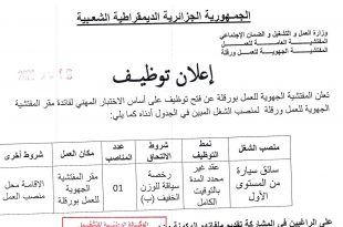 اعلان عن توظيف مديرية الخدمات الجامعية لولاية بسكرة ads تعلن مديرية الخدمات الجامعية لولاية بسكرة عن فتح مسابقة توظيف في الرتب المبينة ادناه عون ادارة عدد المناصب 02 منصب نمط التوظيف: مسابقة على اساس الاختبار ملف مسابقة على اساس الاختبار : طلب خطي يتم …