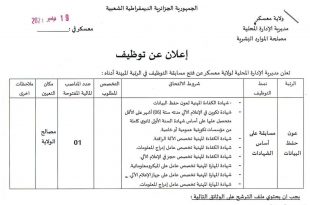 أكمل القراءة »اعلان عن توظيف بمديرية الادارة المحلية لولاية معسكر