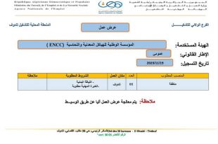 أكمل القراءة »عرض عمل بالمؤسسة الوطنية للهياكل المعدنية و النحاسية ENCC