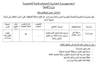 أكمل القراءة »اعلان عن توظيف بالمؤسسة العمومية للصحة الجوارية بدلس ولاية بومرداس