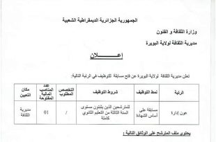 أكمل القراءة »اعلان عن توظيف بمديرية الثقافة لولاية البويرة