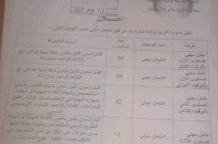 اعلان عن توظيف مديرية التربية لولاية تمنراست ads تعلن مديرية التربية لولاية تمنراست عن فتح مسابقة توظيف في الرتب المبينة ادناه عامل مهني من المستوى الاول التوقيت الكامل عدد المناصب 34 منصب نمط التوظيف: مسابقة على اساس الاختبار المهني عامل مهني من المستوى الاول …