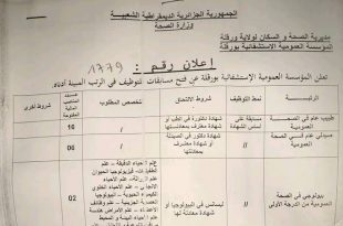 اعلانات توظيف الولايات المعنية الجزائر العاصمة ، البليدة، المدية، بجاية، الطارف، قالمة، برج بوعريريج، سيدي بلعباس يرجى من المهتمين التقرب من الادارة المعنية بالعرض او الملحقة المحلية للتشغيل حسب طبيعة الاعلان ads اعلان عن توظيف بلدية وادي الكبريت سوق اهراس اعلان عن توظيف المؤسسة …