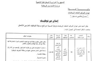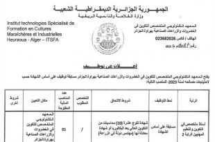اعلانات توظيف الولايات المعنية الجزائر العاصمة ، البليدة، المدية، بجاية، الطارف، قالمة، برج بوعريريج، سيدي بلعباس يرجى من المهتمين التقرب من الادارة المعنية بالعرض او الملحقة المحلية للتشغيل حسب طبيعة الاعلان ads اعلان عن توظيف المعهد التكنولوجي المتخصص للتكوين في الخضروات والزراعات الصناعية الجزائر …