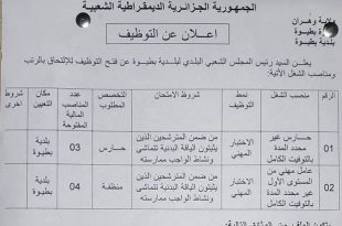 أكمل القراءة »اعلان عن توظيف ببلدية بطيوة ولاية وهران