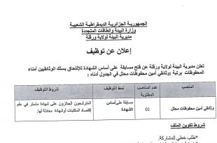 أكمل القراءة »اعلان توظيف بمديرية البيئة لولاية ورقلة