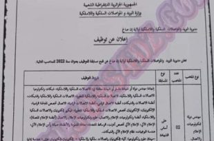 أكمل القراءة »اعلان عن توظيف بمديرية البريد والمواصلات السلكية واللاسلكية لولاية عين صالح