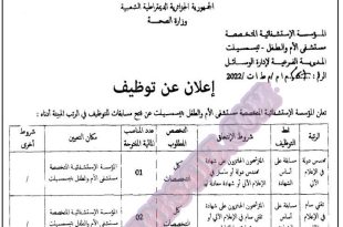 أكمل القراءة »اعلان توظيف بالمؤسسة الاستشفائية المتخصصة الام والطفل بتيسمسيلت