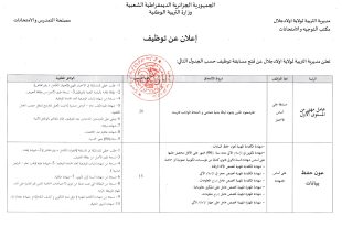 أكمل القراءة »اعلان عن توظيف بمديرية التربية لولاية اولاد جلال