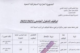 أكمل القراءة »اعلان عن توظيف بجامعة محمد خيضر بسكرة