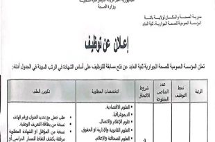 الجمهورية الجزائرية الديمقراطية الشعبية وزارة الصحة مديرية الصحة والسكان لولاية باتنة المؤسسة العمومية للصحة الجوارية ثنية العابد ads إعلان عن توظيف تعلن المؤسسة العمومية للصحة الجوارية ثنية العابد عن فتح مسابقة للتوظيف على أساس الشهادة في الرتب المبينة أدناه: جميع مسابقات وإعلانات التوظيف نوفمبر …