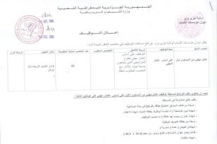 الجمهورية الجزائرية الديمقراطية الشعبية وزارة الري مديرية الري لولاية الأغواط ads إعلان عن توظيف تعلن مديرية الري لولاية الأغواط عن فتح مسابقة للتوظيف على أساس الاختبار المهني لشغل منصب عون وقاية من المستوى الأول بالتوقيت الكامل بعقد غير محدد المدة وفق الشروط المحددة أدناه: …