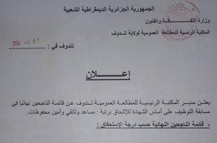 أكمل القراءة »قائمة الناجحين في المسابقات على اساس الشهادة بالمكتبة الرئيسية للمطالعة العمومية تندوف