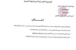 أكمل القراءة »نتائج مسابقة توظيف الأستاذة المساعدين بجامعة الجزائر 2