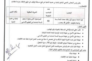 تعلن مديرية التربية لولاية الشلف عن تنظيم مسابقات على اساس الاختبارات للالتحاق بالمناصب المبينة ادناه كاتب عدد المناصب 02 عامل مهني من المستوى الثاني عدد المناصب 25 عامل مهني من المستوى الثالث عدد المناصب 08 عامل مهني من المستوى الاول عدد المناصب 03 عون …