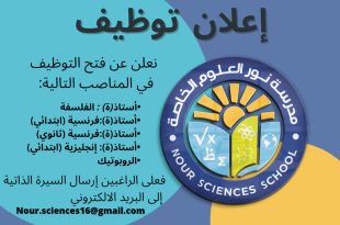 أكمل القراءة »مدرسة نور العلوم الخاصة ببوزريعة الجزائر العاصمة توظف