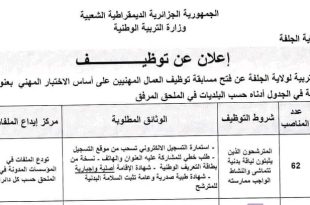 أكمل القراءة »اعلان توظيف بمديرية التربية لولاية الجلفة