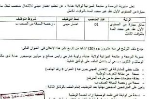 تعلن ادارة مركز التكوين المهني والتمهين واد العلايق البليدة عن فتح مسابقة للتوظيف علىىى اساس الاختبار المهني للمناصب المفتوحة لسنة 2021 كما هو الموضح ادناه ads حارس عدد المناصب 04 عامل مهني من المستوى الاول عدد المناصب 02 عامل مهني من المستوى الثاني عدد …