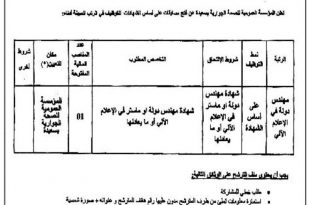 يعلن مدير المؤسسة العمومية الاستشفائية العامرية عن فتح مسابقة للتوظيف في الرتب التالية ads طبيب عام في الصحة العمومية عدد المناصب 01 نمط التوظيف مسابقة على اساس الشهادة تاريخ نشر الاعلان : 23 جوان 2021 اخر اجل لايداع الملفات 15 يوم من تاريخ الاعلان …