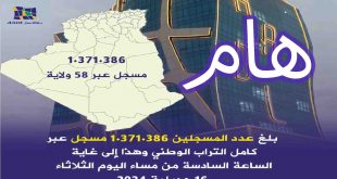 أعلنت وزارة السكن والعمران والمدينة، يوم الثلاثا 16 جويلية 2024، بيانًا مهمًا يتعلق بمنصة التسجيل في برنامج “عدل 3”. ads وأفادت الوزارة في بيانها أن عدد المسجلين حتى الساعة السادسة من مساء اليوم قد بلغ 1,371,386 مكتتبًا عبر جميع أنحاء البلاد. وأكدت الوزارة أن …