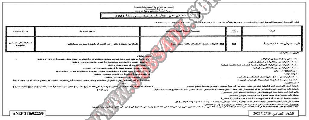 تعلن تعلن المؤسسة العمومية للصحة الجوارية قلتة سيدي سعد الاغواط عن فتح مسابقة للتوظيف على اساس الشهادة في المناصب المبينة ادناه