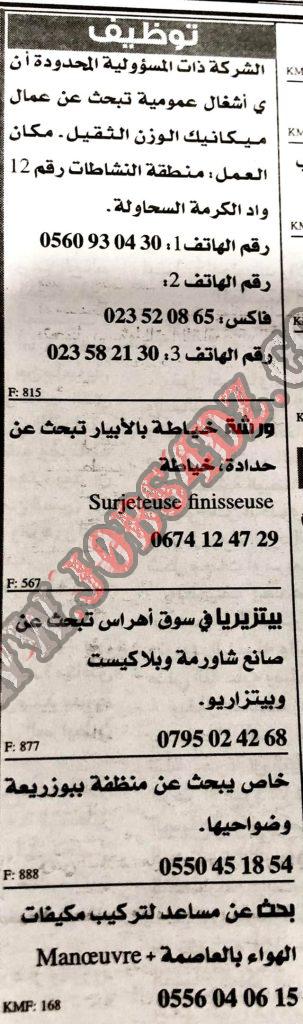 السلام عليكم متابعي مدونة التوظيف نقدم لكم في هذا الموضوع اعلانات توظيف متنوعة لدى خواص منقولة من الجرائد لنهار اليوم 10 ماي 2022