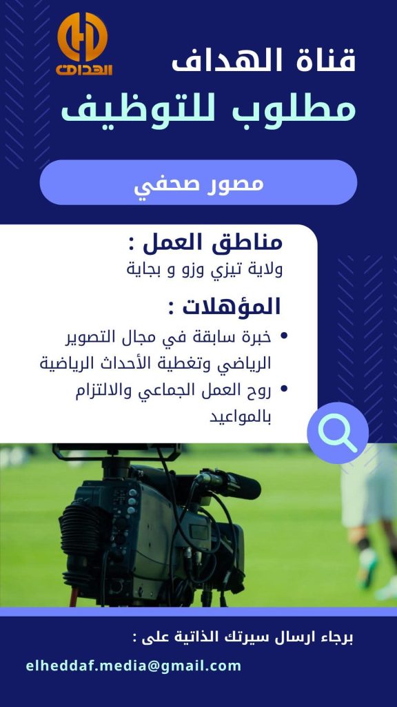 المؤهلات المطلوبة: خبرة سابقة في مجال التصوير الصحفي الرياضي وتغطية اللقاءات .